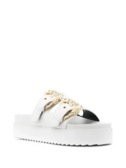 Women Versace Jeans Couture Baroque-buckle Ruffled Sandals