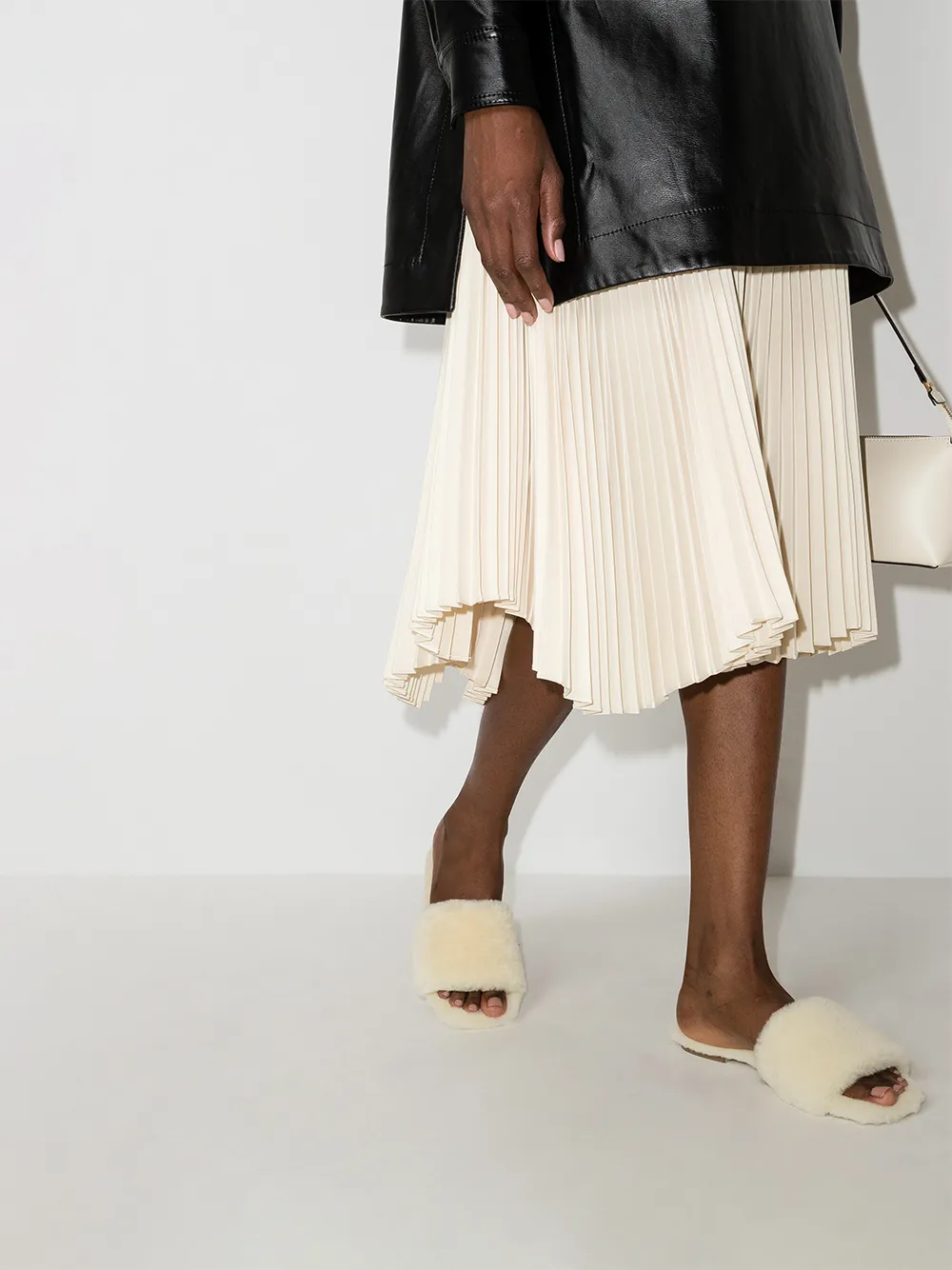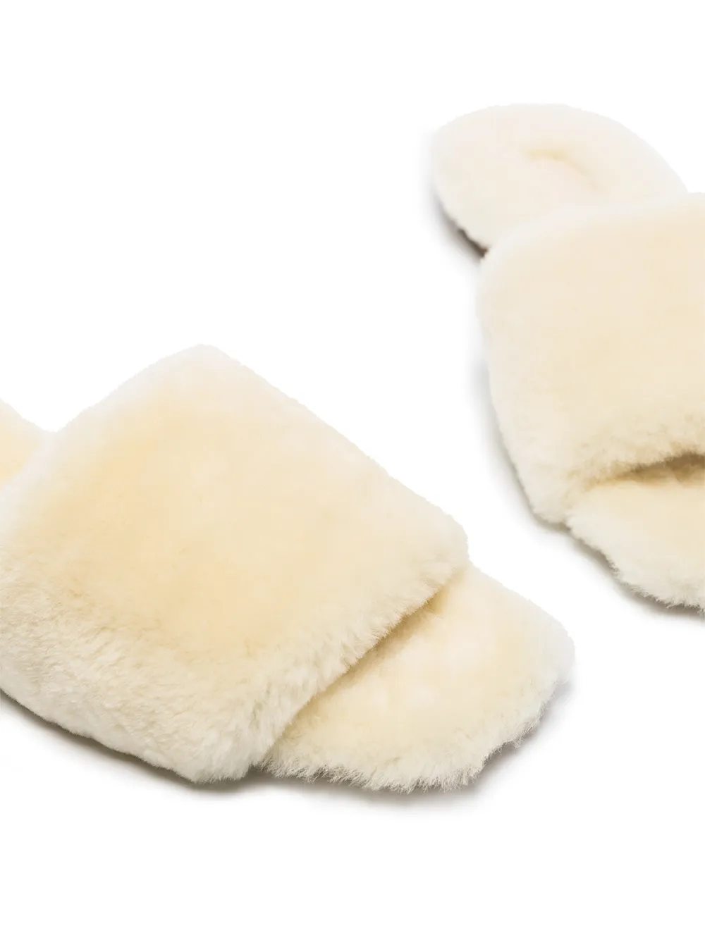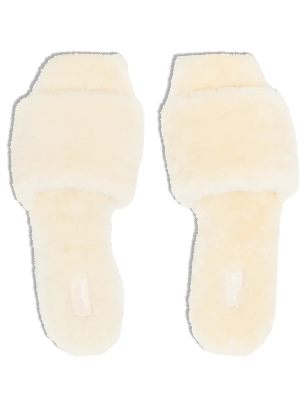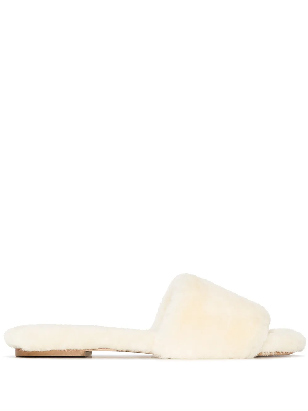 Footwear brand aeyde delivers high-quality materials elevated by craftsmanship and effortless design. Crafted in Italy, the Anna slippers are made from shearling in a cream shade and feature a squared open toe for an added touch of modernity.