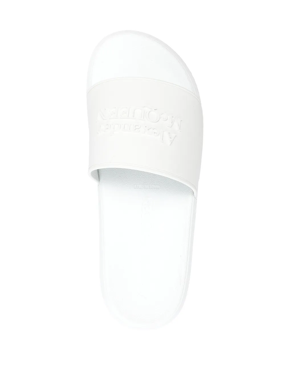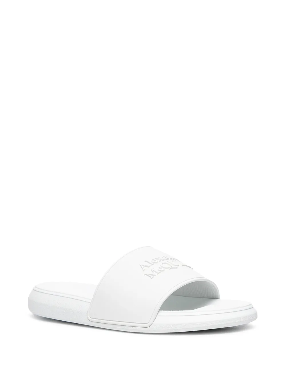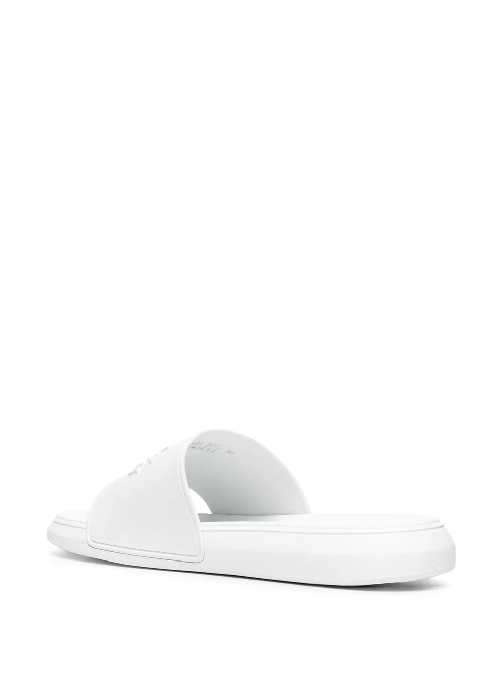 Poolside style at the ready. These slip-on slides from Alexander McQueen are made from rubber for traction and have debossed logo lettering across the strap.