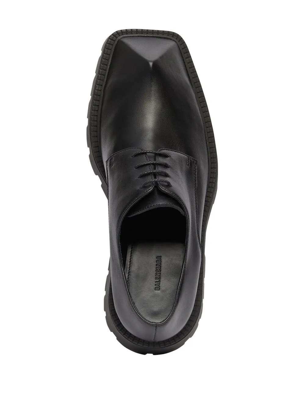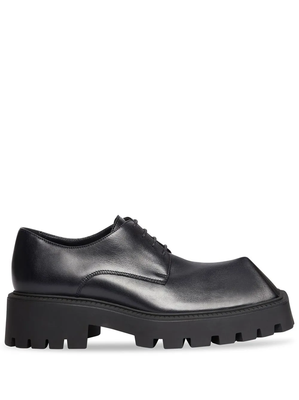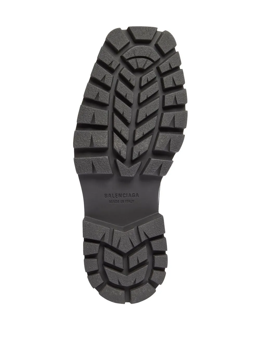 Constantly pushing the boundaries of contemporary footwear, Balenciaga presents another striking pair of shoes for the brand’s AW22 collection. So-called because of their resemblance to the tough-skinned mammal, these leather Rhino Derby shoes stand out with their upturned square toe and a chunky rubber lug sole.