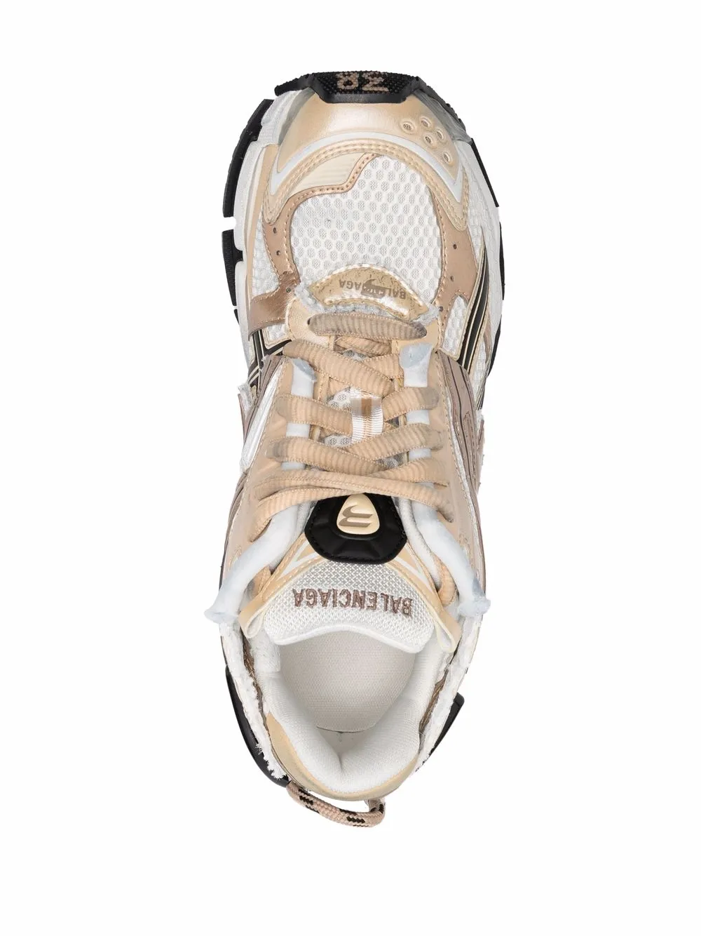 Displaying the brand’s inclination for athletic-inspired chunky footwear, Balenciaga’s low-top Runner sneakers are produced in a quadruple colourway and layered construction, for a breathable design.