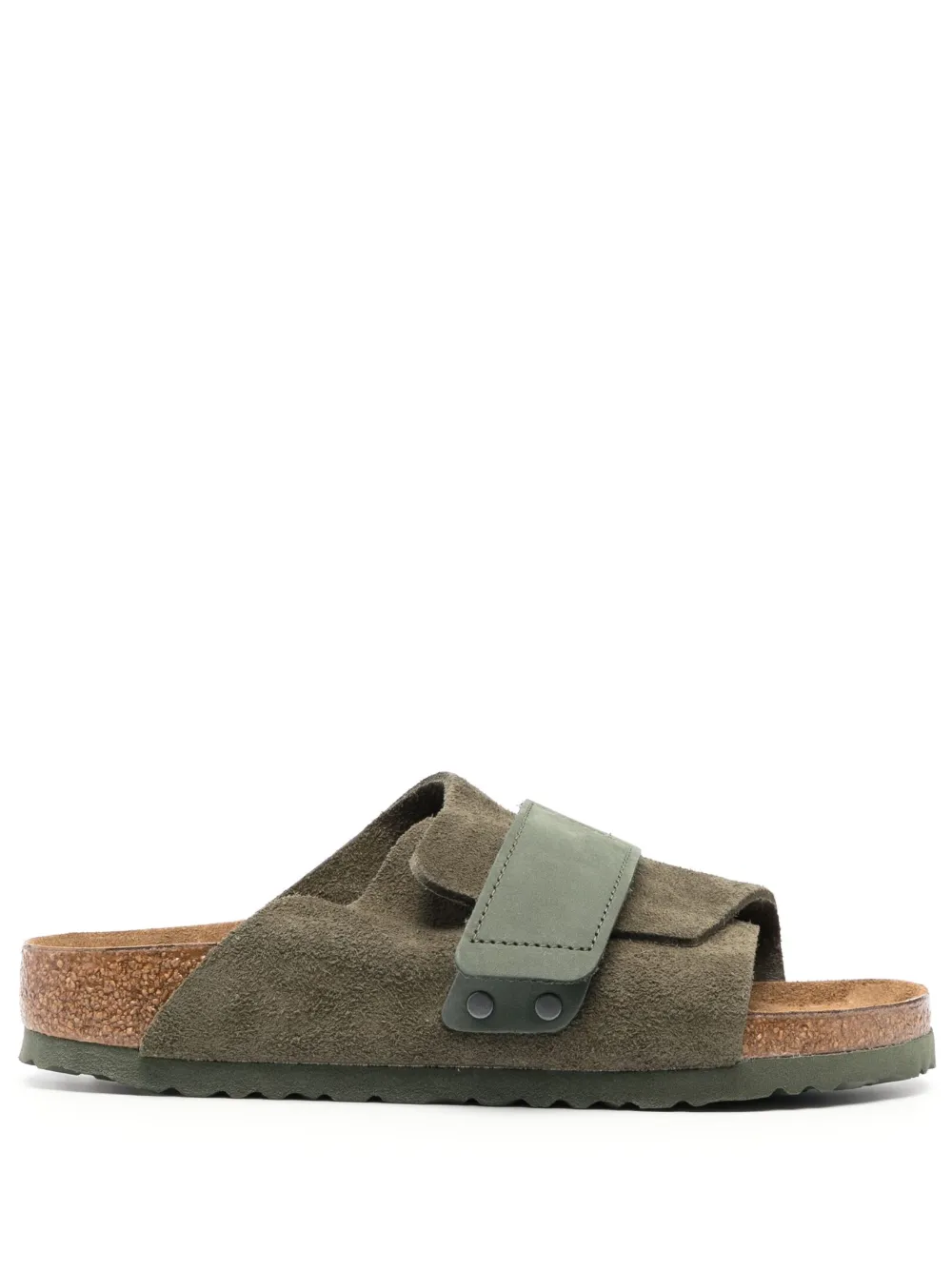 Crafted from soft suede, these slides from Birkenstock draw inspiration from the Zürich model, thanks to a slip-on style. This pair is characterised by the addition of an adjustable fastener to the front of the design.