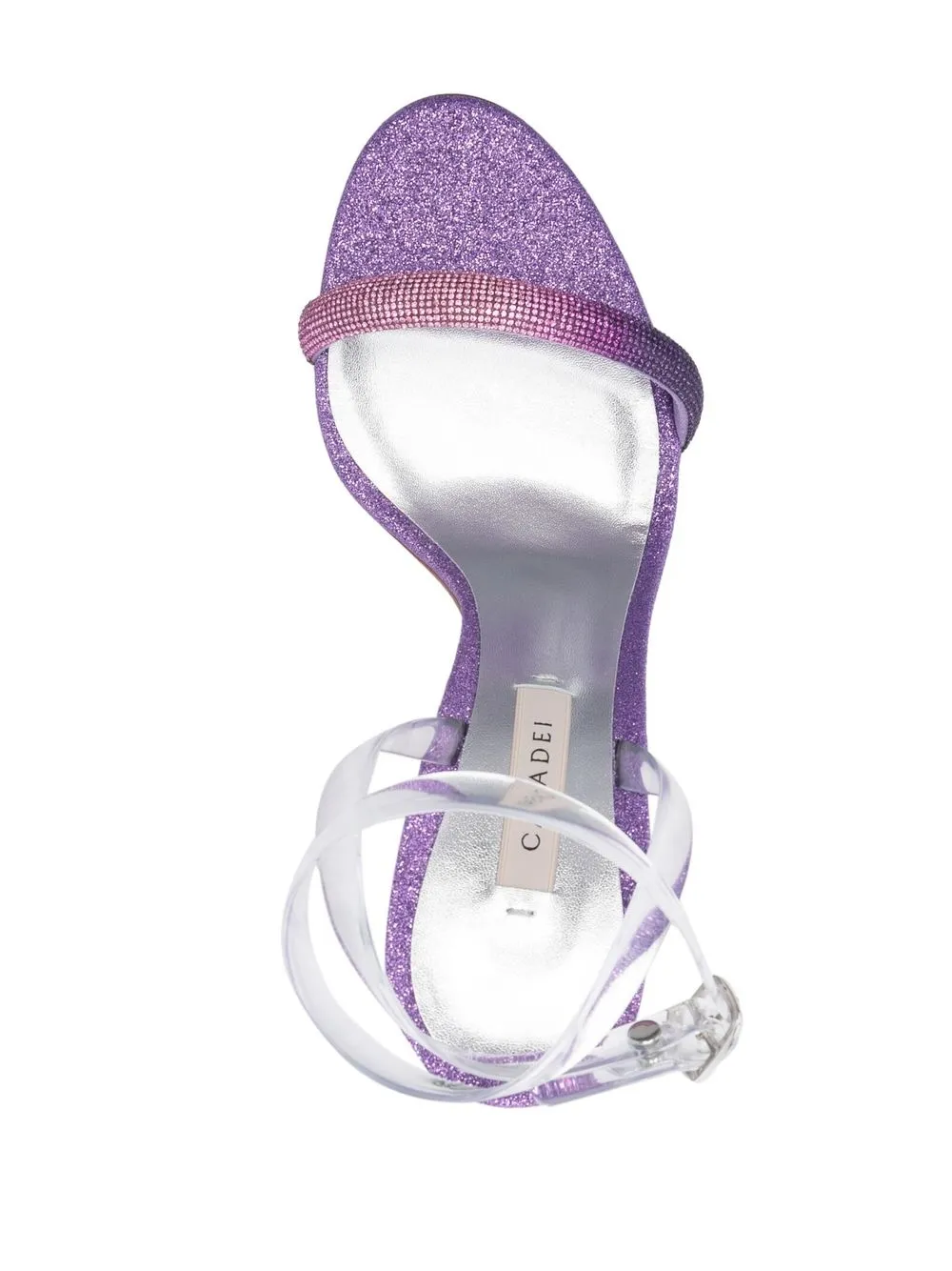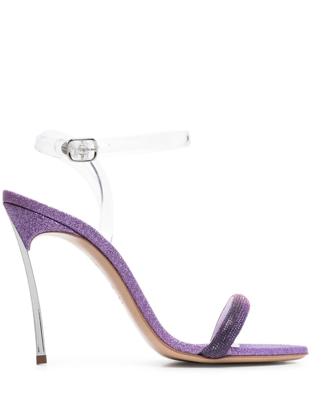 Blade Hollywood 120mm glittered sandals from CASADEI featuring dark purple, calf leather, glitter detailing, open toe, buckle-fastening ankle strap and high heel.