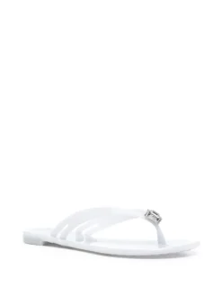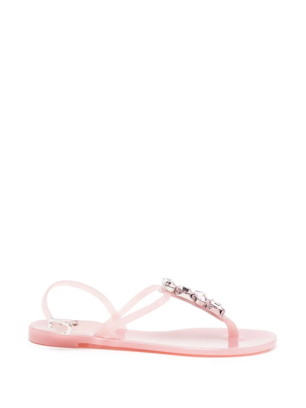 crystal-embellished beach flip flops from CASADEI featuring blush pink, crystal embellishment, T-bar strap, buckle-fastening slingback strap and flat rubber sole.