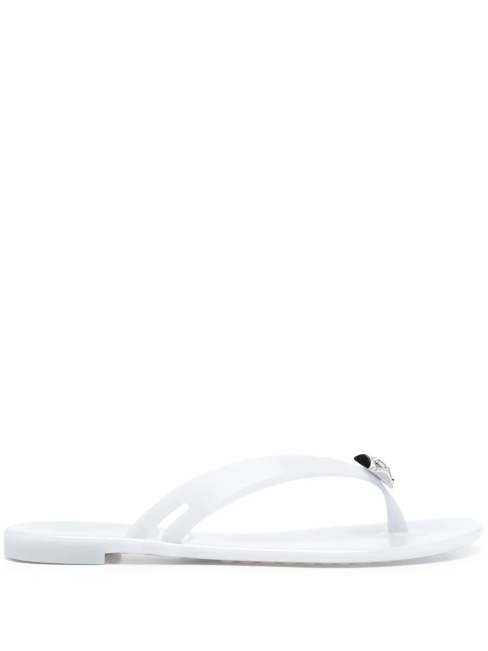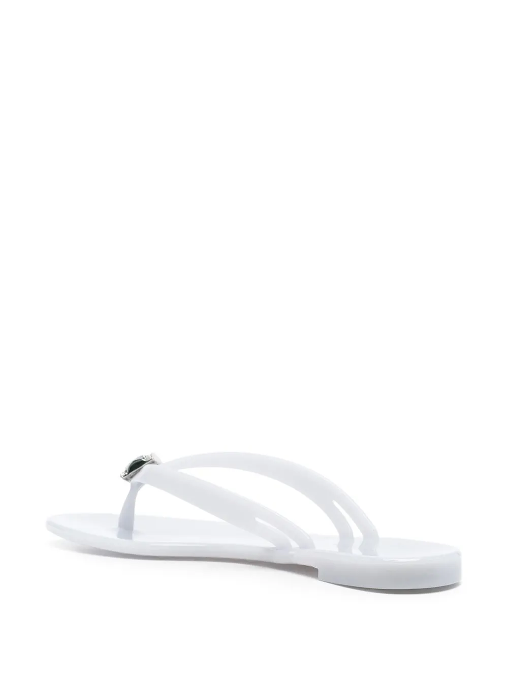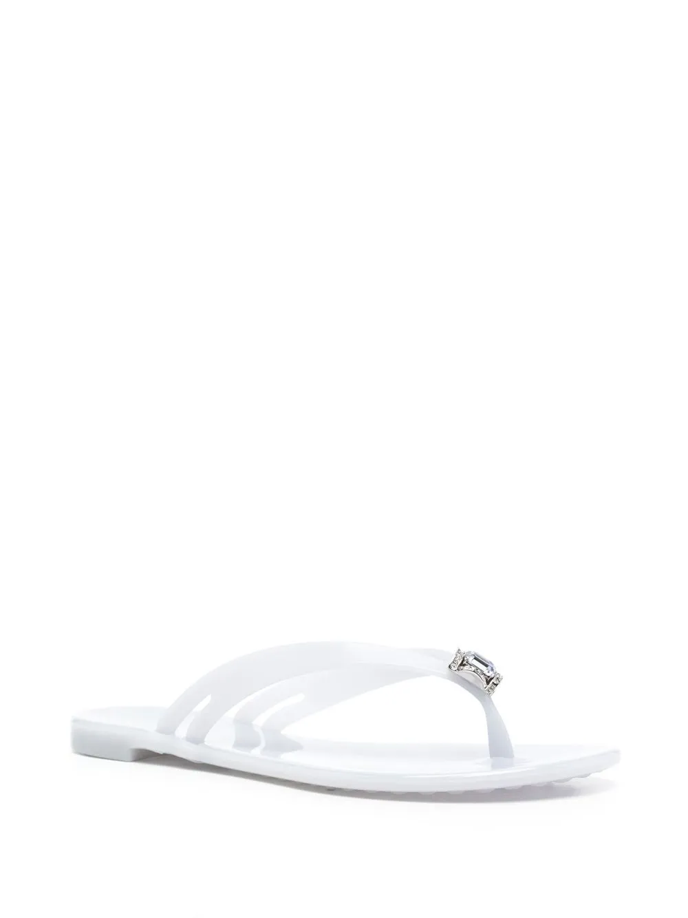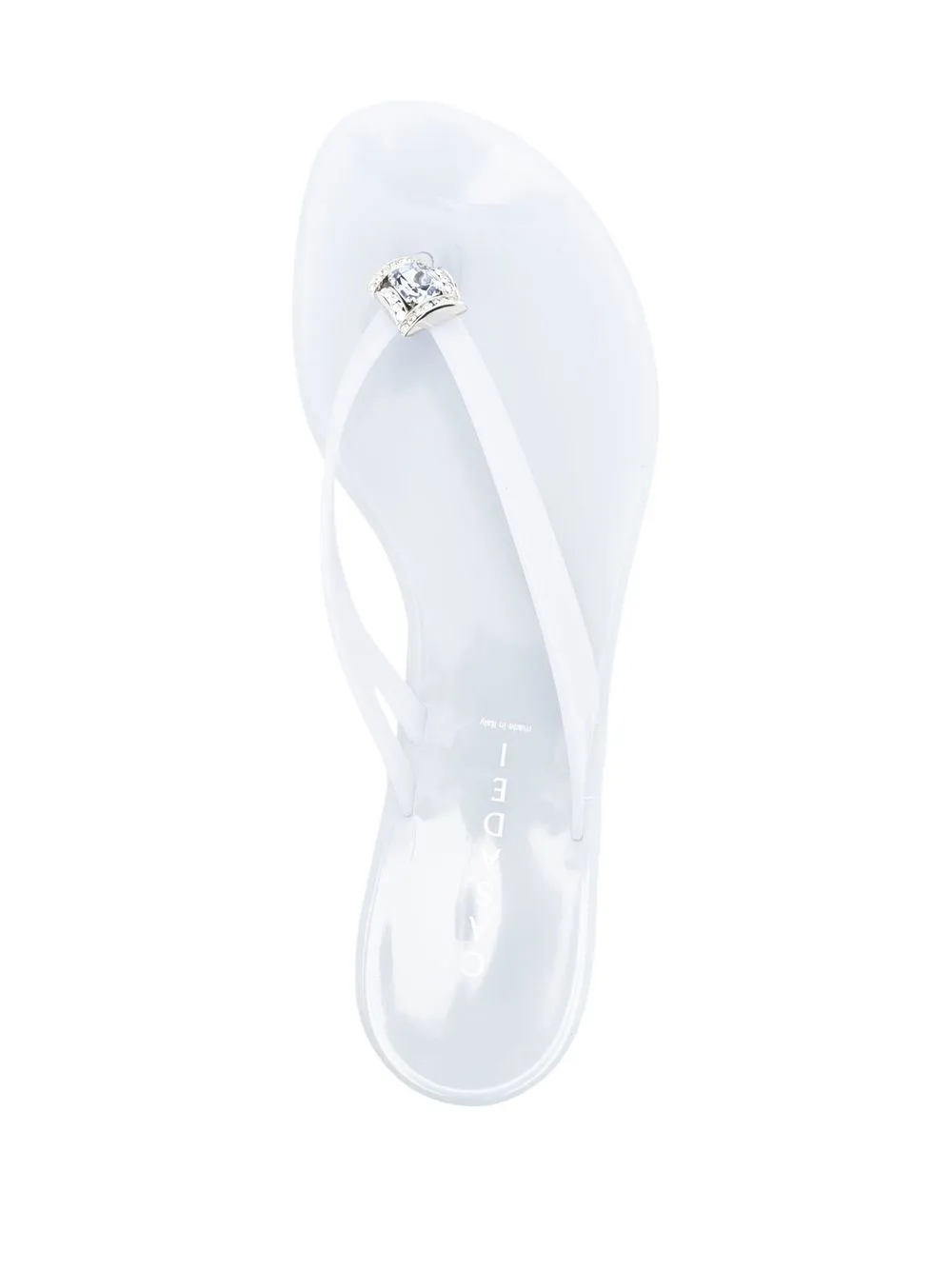 crystal-embellished jelly sandals from CASADEI featuring grey, transparent design, crystal embellishment, open toe, thong strap, branded insole and flat rubber sole.