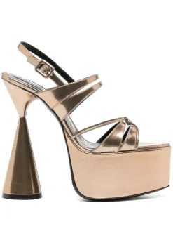 D’ACCORI channels a maximalist disco aesthetic into these towering leather platform sandals. They’re crafted from metallic gold leather and set on the brand’s signature hourglass-shaped heel.
