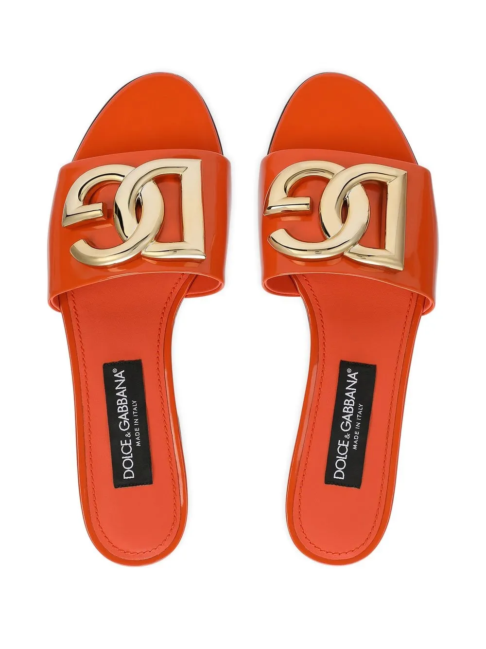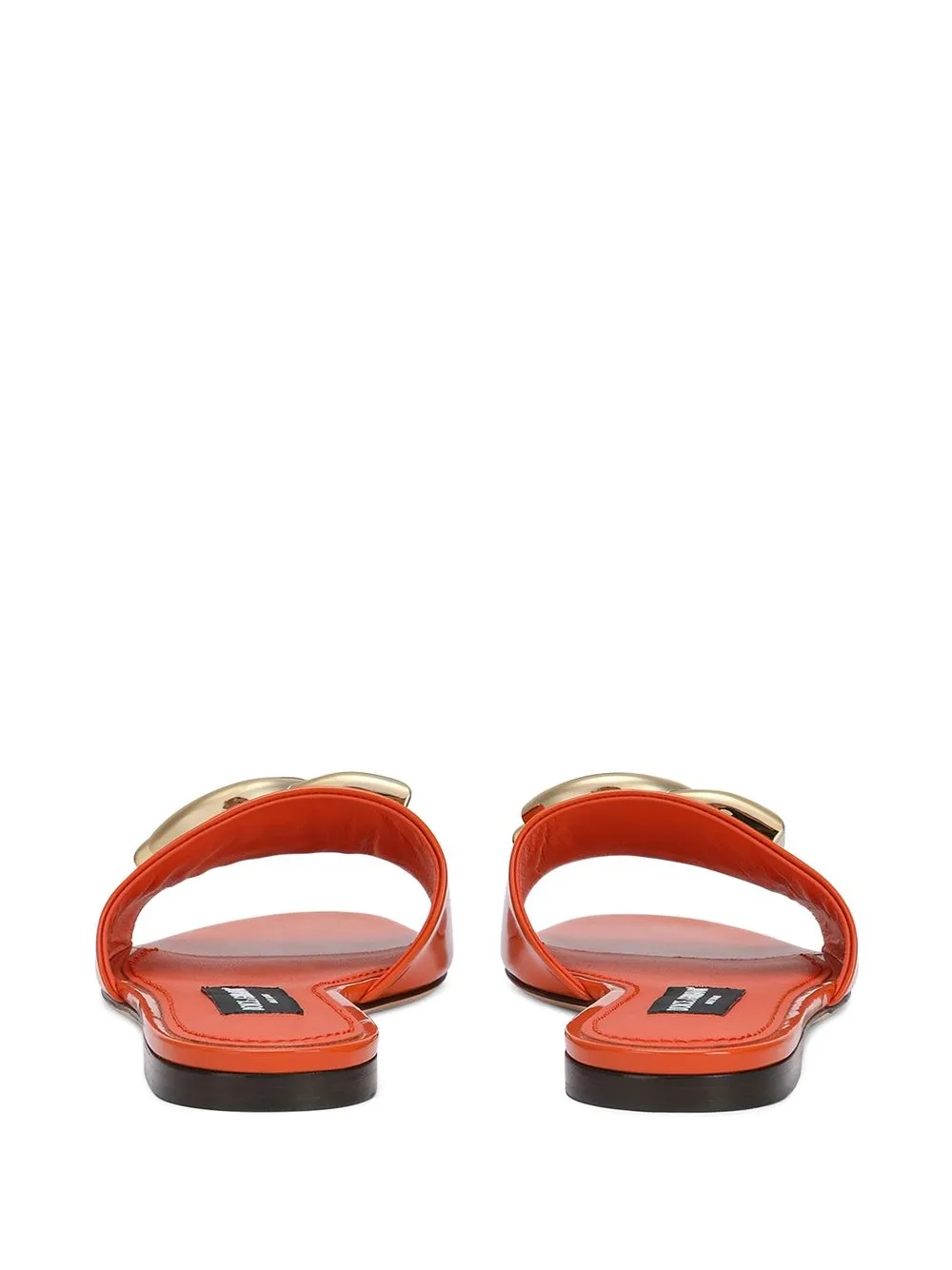 Synonymous with Dolce & Gabbana’s extravagant aesthetic, these slides are made from glossy orange calfskin and finished with the DG logo for a recognisable element.