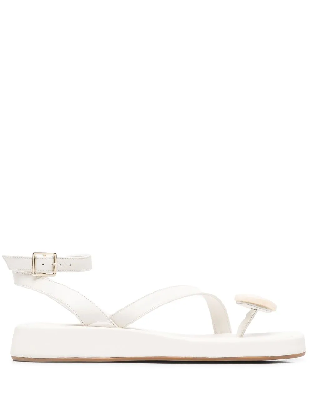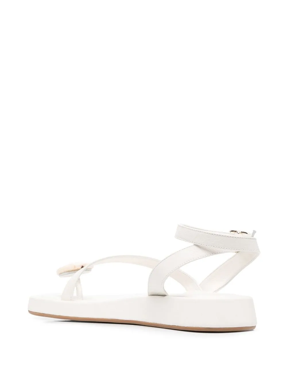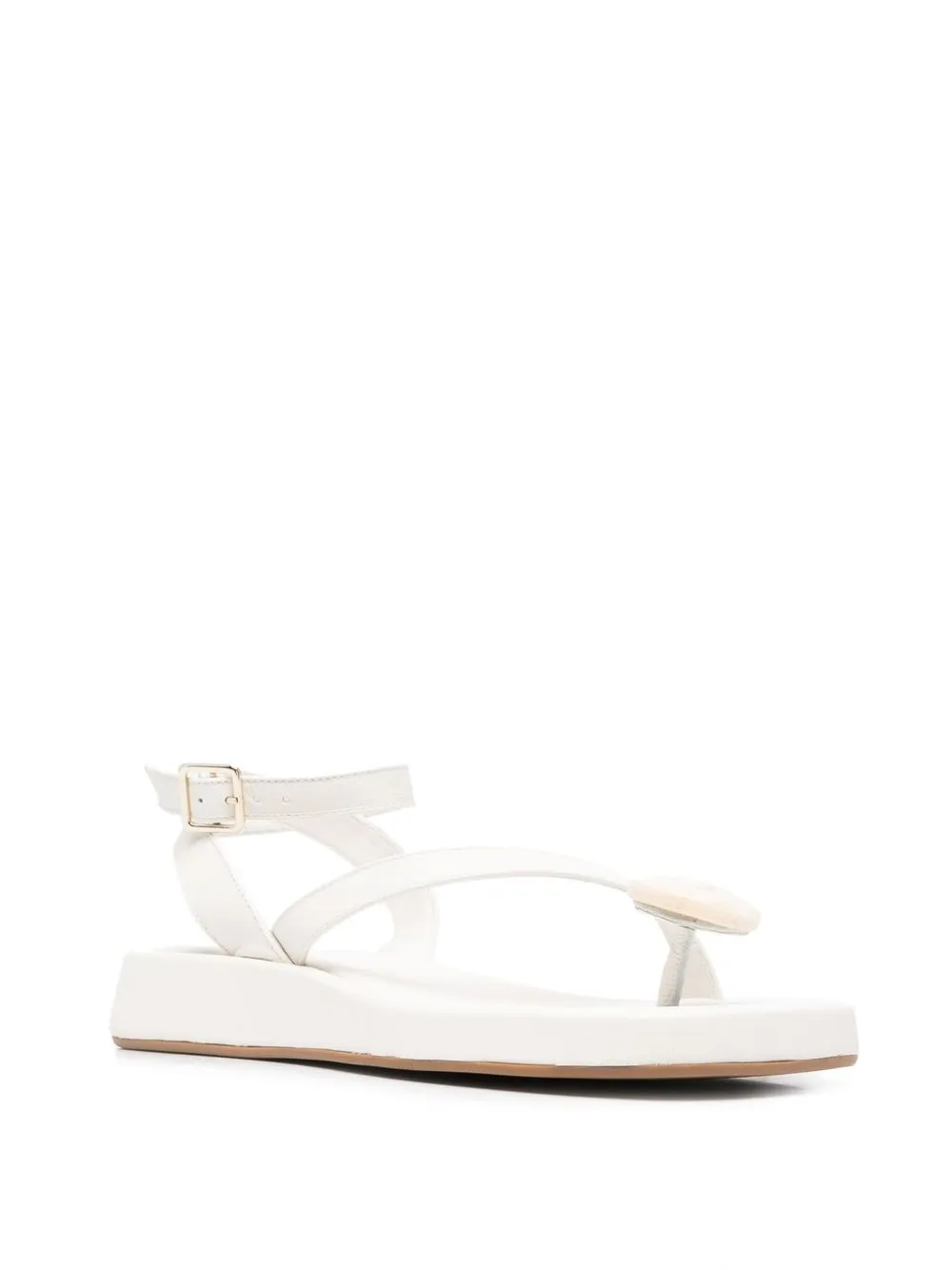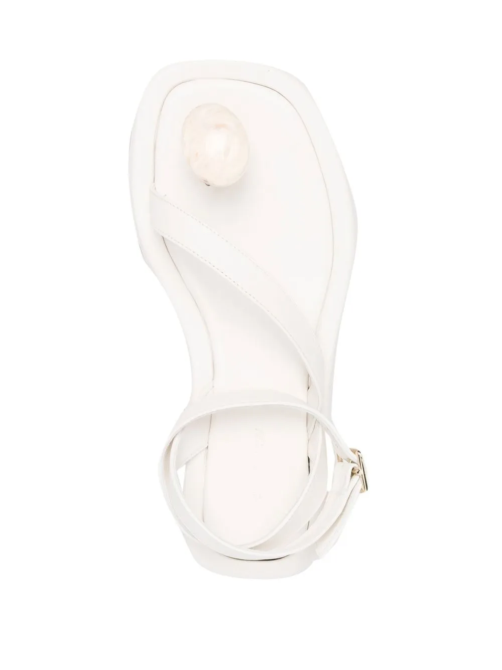 Rosie gemstone flat sandals from GIABORGHINI featuring ivory white, leather, gemstone detailing, open toe, buckle-fastening ankle strap and flat rubber sole.