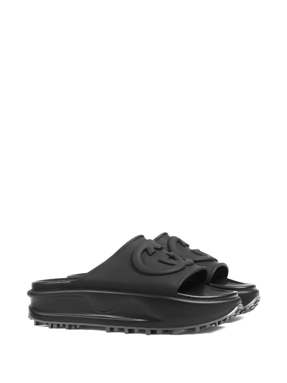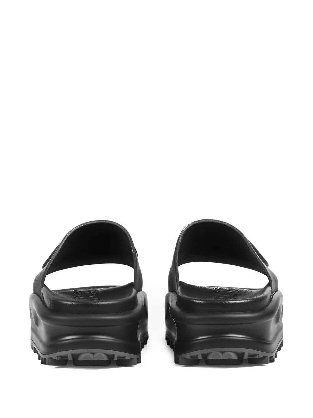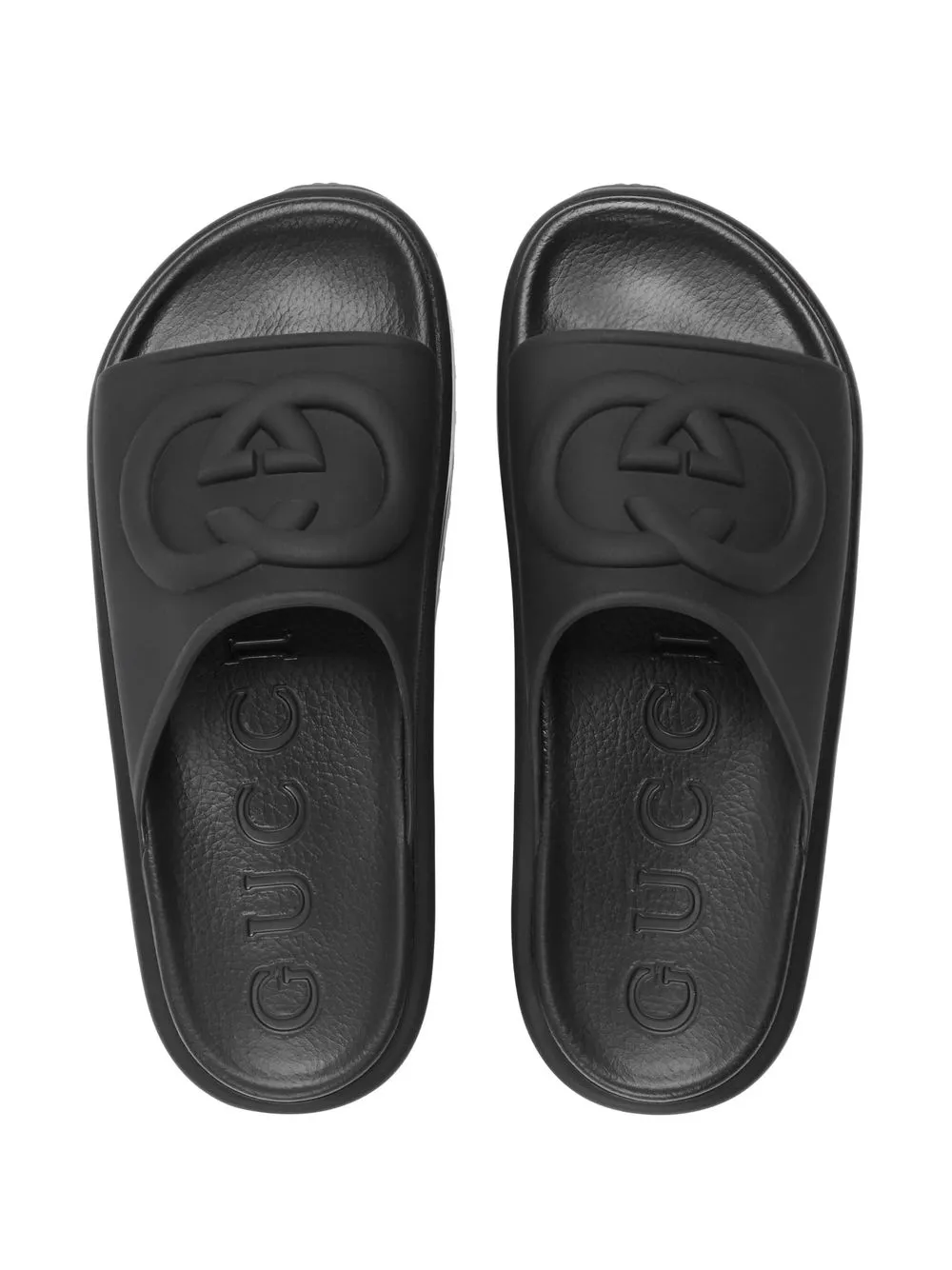 Gucci’s slides subtly nod to logomania. This black pair is topped with the brand’s iconic Interlocking G motif that matches the black rubber construction.