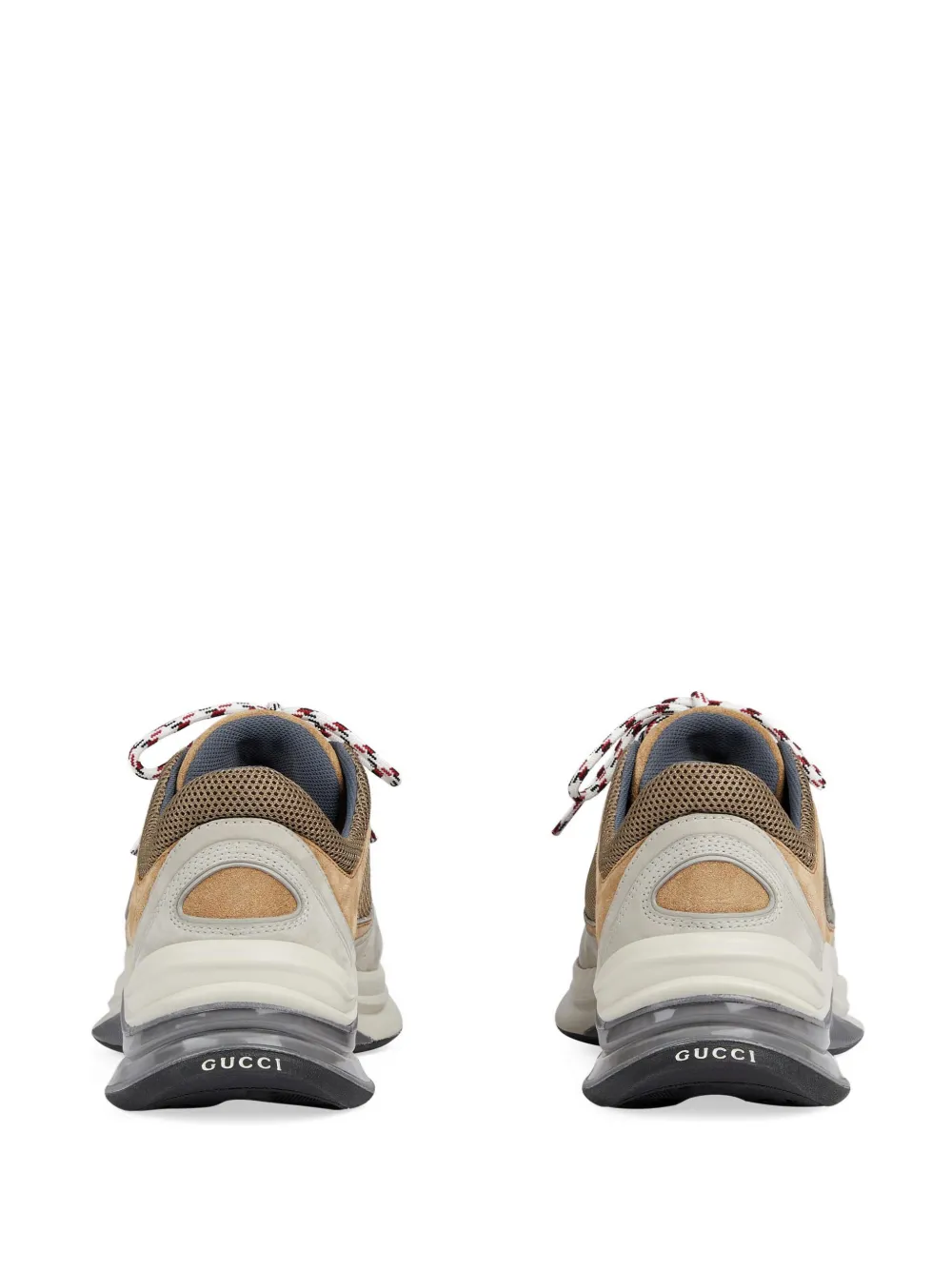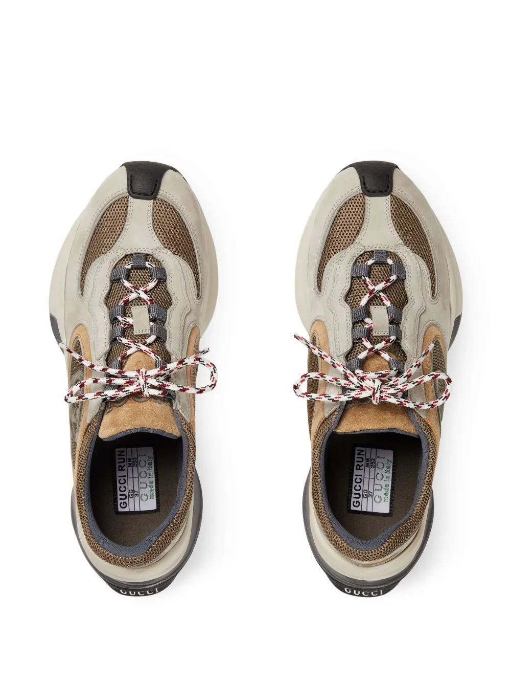 These Run sneakers from Gucci are crafted from suede to a streamlined silhouette inspired by classic sports styles. They’re panelled with mesh inserts and embroidered with the brand’s iconic logo at the sidewall.