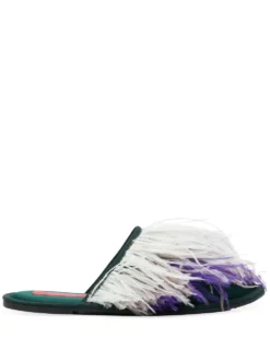 Merging the brand’s passion for vintage designs with masterful Italian craftsmanship, these La DoubleJ slippers are artfully embroidered with a spray of responsibility-sourced ostrich plume. Set on a slender rubber sole, they’re finished with cushioned footbeds that help to boost comfort.