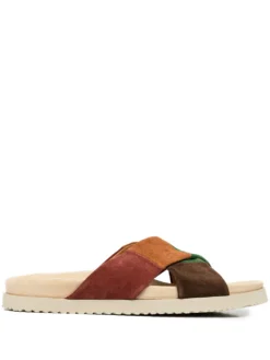 Brown suede Hippie open toe sandals from Madison.Maison featuring crossover strap detail, open toe, flat sole and branded insole.