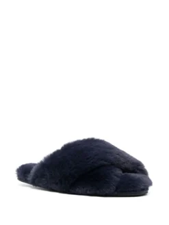 stitched-trim slippers from Maison Margiela featuring black, leather, contrast stitching, round toe and flat rubber sole.