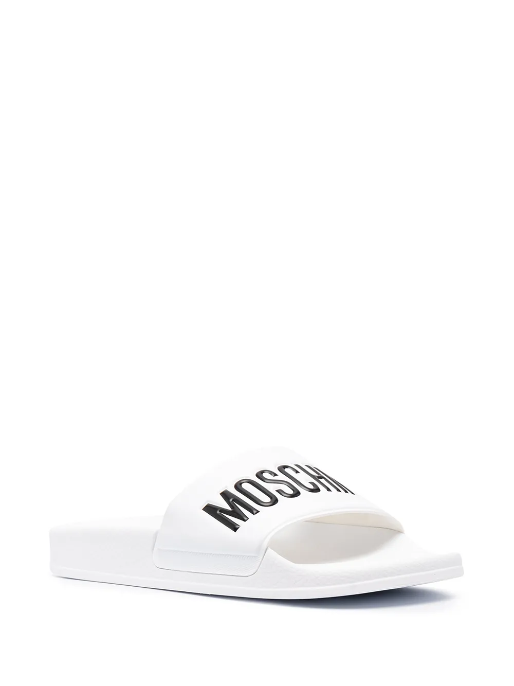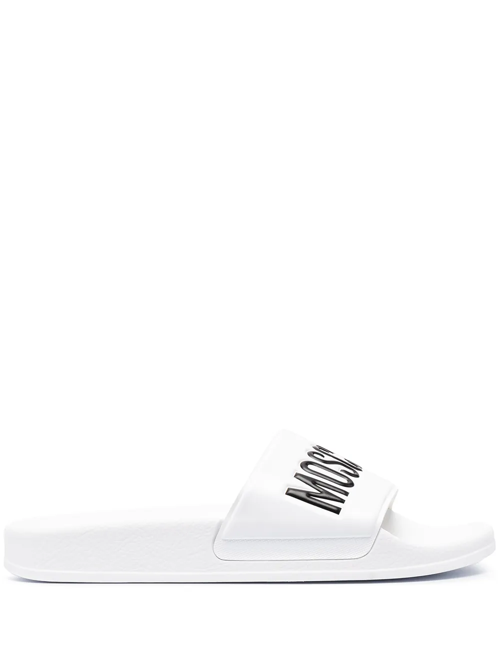 Head to the pool in effortless style, with Moschino. With a logo detail at the toe, these slide sandals were made for slipping on and chilling out. Get comfortable.