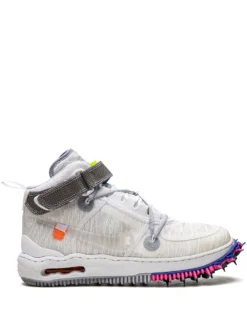The Nike Air Force 1 Mid sneaker now arrive in a grey and white design. The pair comes crafted from all-over knitted mesh, highlighted with a Swoosh on the sides with a ridged spiked sole. A touch strap fastening on the front completes the design with a perfect fit.