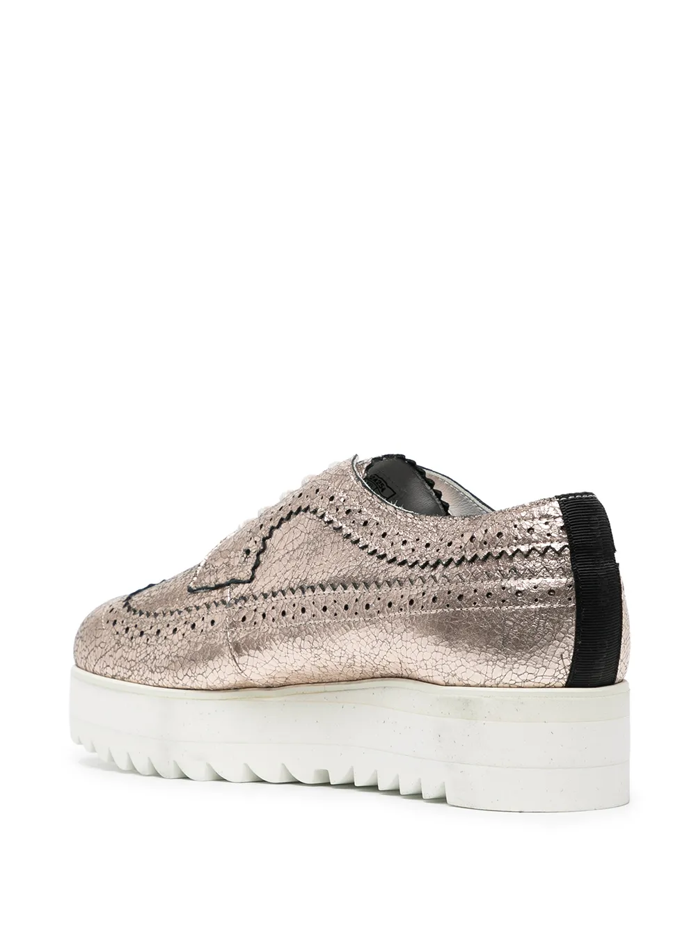 Pink/black/white leather platform leather brogues from Onitsuka Tiger featuring metallic finish, perforated detailing, laser-cut detail, almond toe, front lace-up fastening, front lace-up fastening, platform sole, αGEL Foam cushioning and The Onitsuka collection.