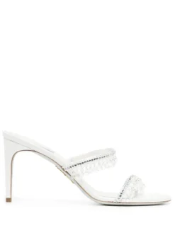 85mm crystal-strap sandals from René Caovilla featuring ivory white, leather, satin finish, crystal embellishment, double-strap design and high heel.