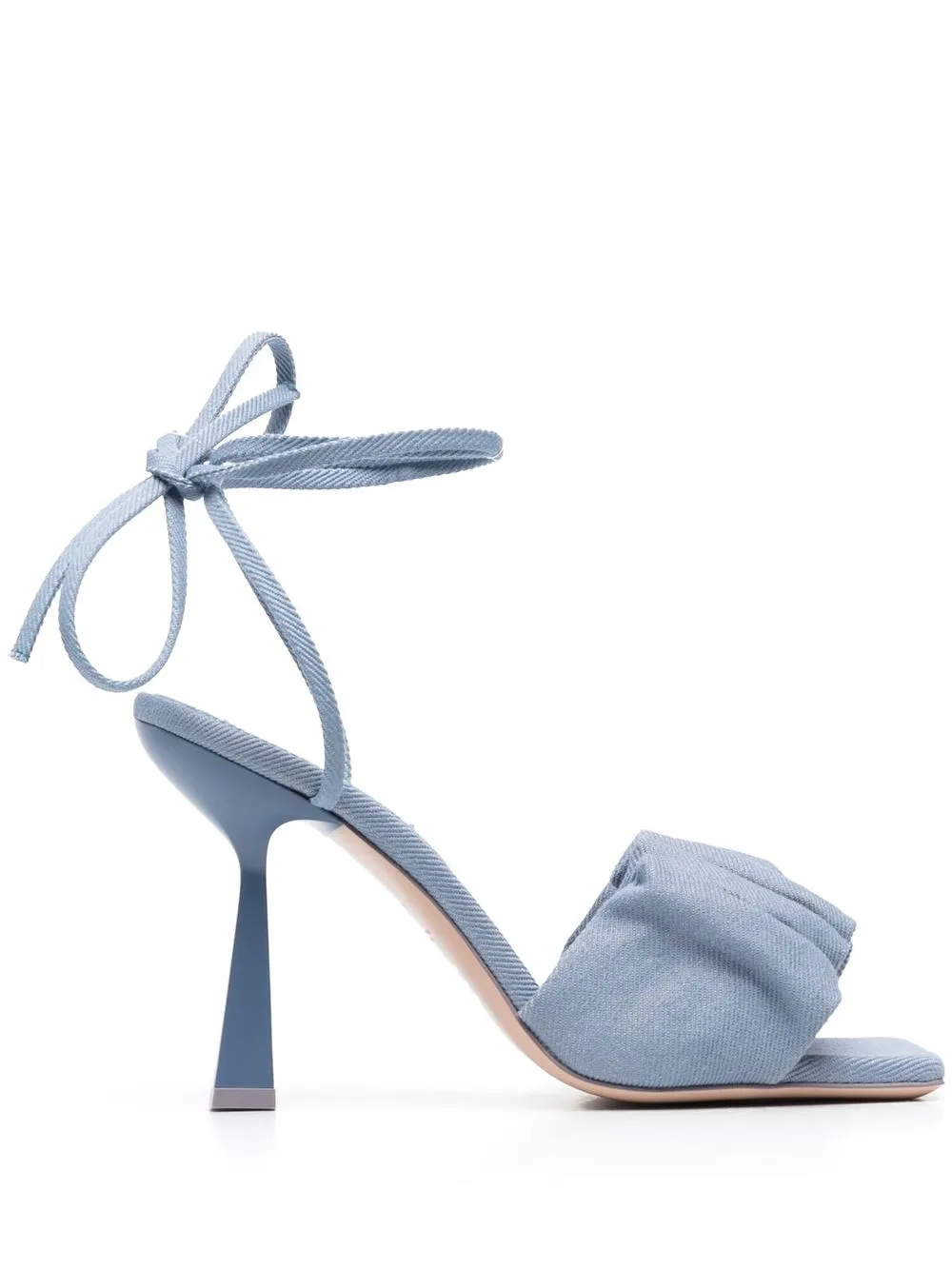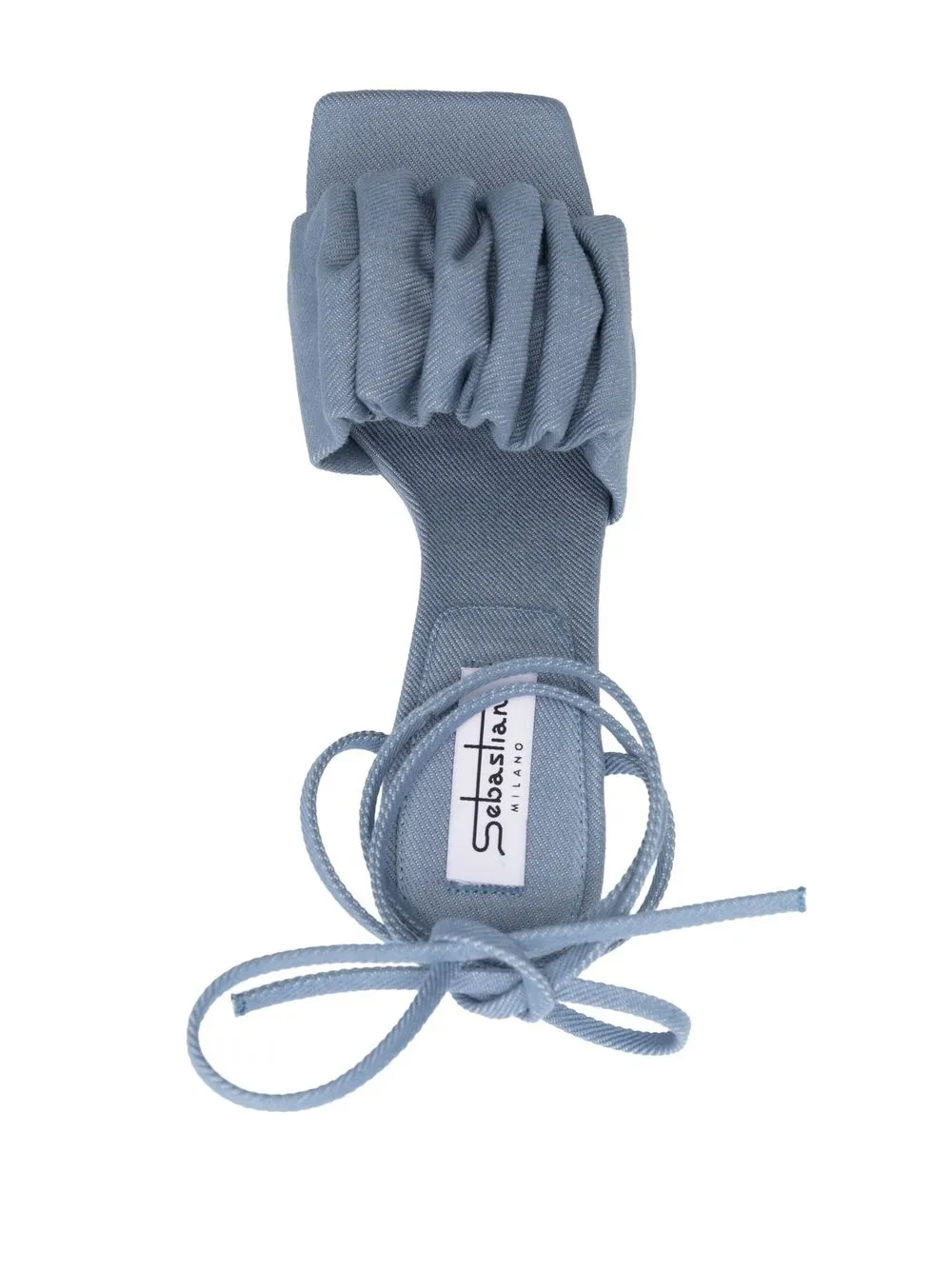 ruched-detail square-toe sandals from Sebastian Milano featuring blue, calf leather, ruched detailing, square toe, tie-fastening ankle strap, branded insole and high sculpted heel.