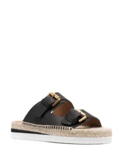 White leather embossed-logo leather slippers from See by Chloé featuring embossed logo to the side, slip-on style, open toe, flat rubber sole and branded insole.
