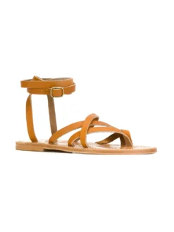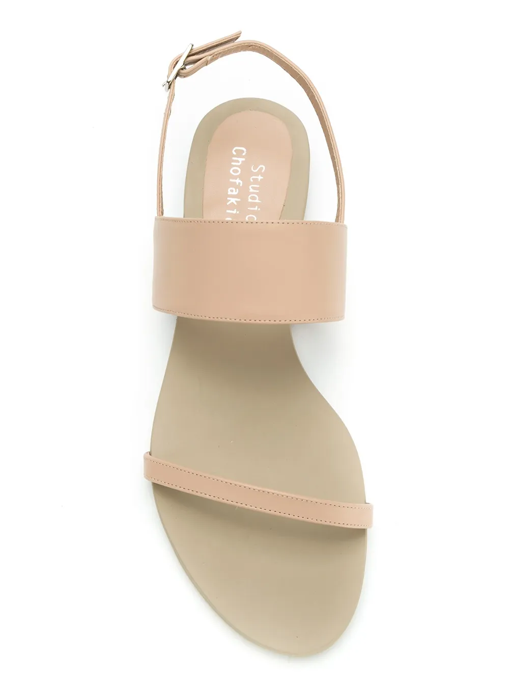 Nude leather flat sandals from STUDIO CHOFAKIAN featuring a strappy design.