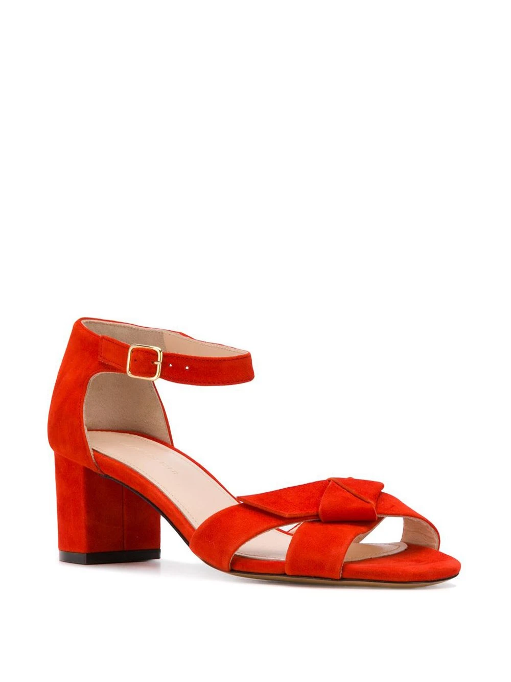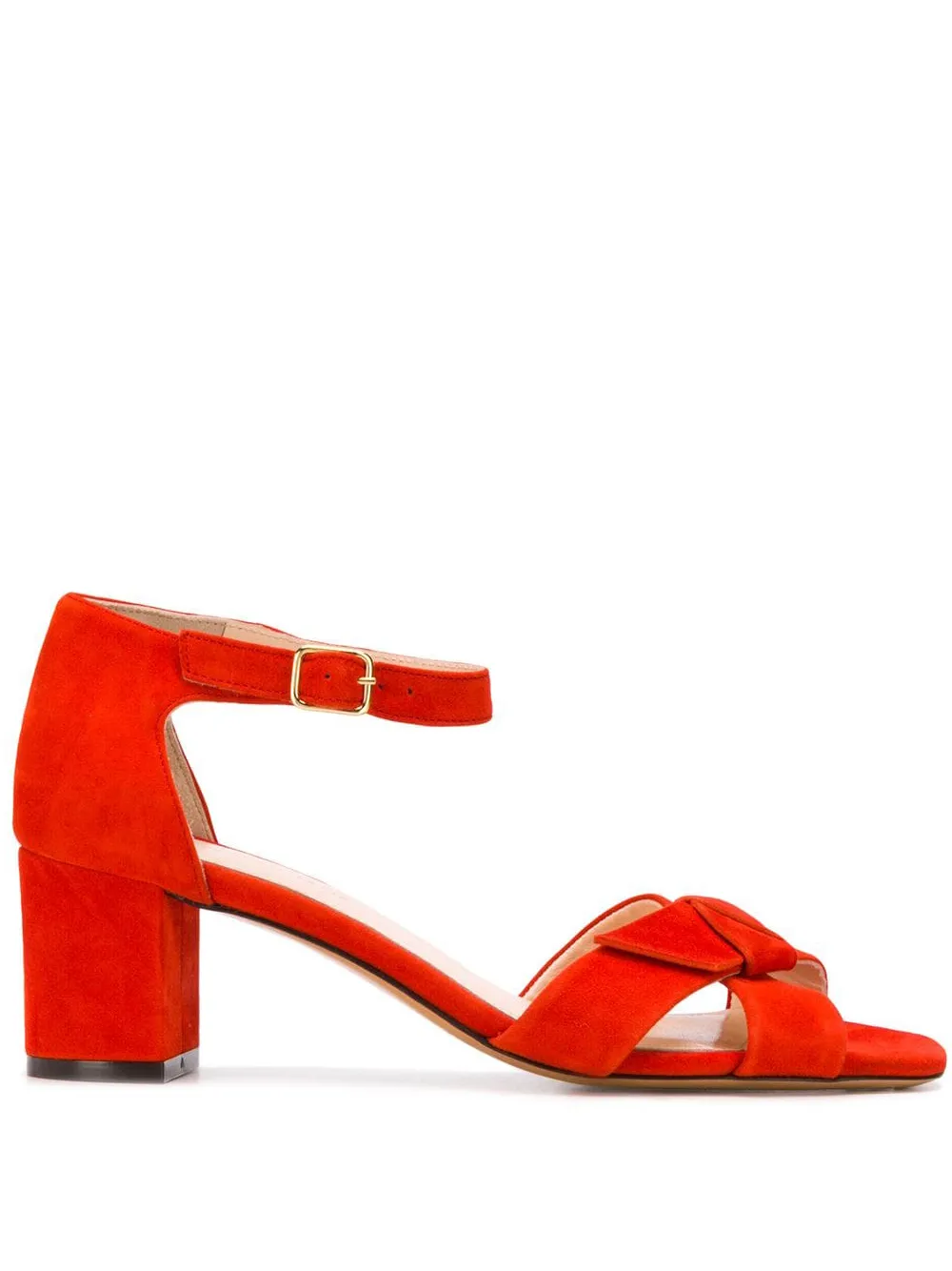 Red suede Clara sandal from Tila March featuring a slingback ankle strap, a low heel and a clasp fastening.