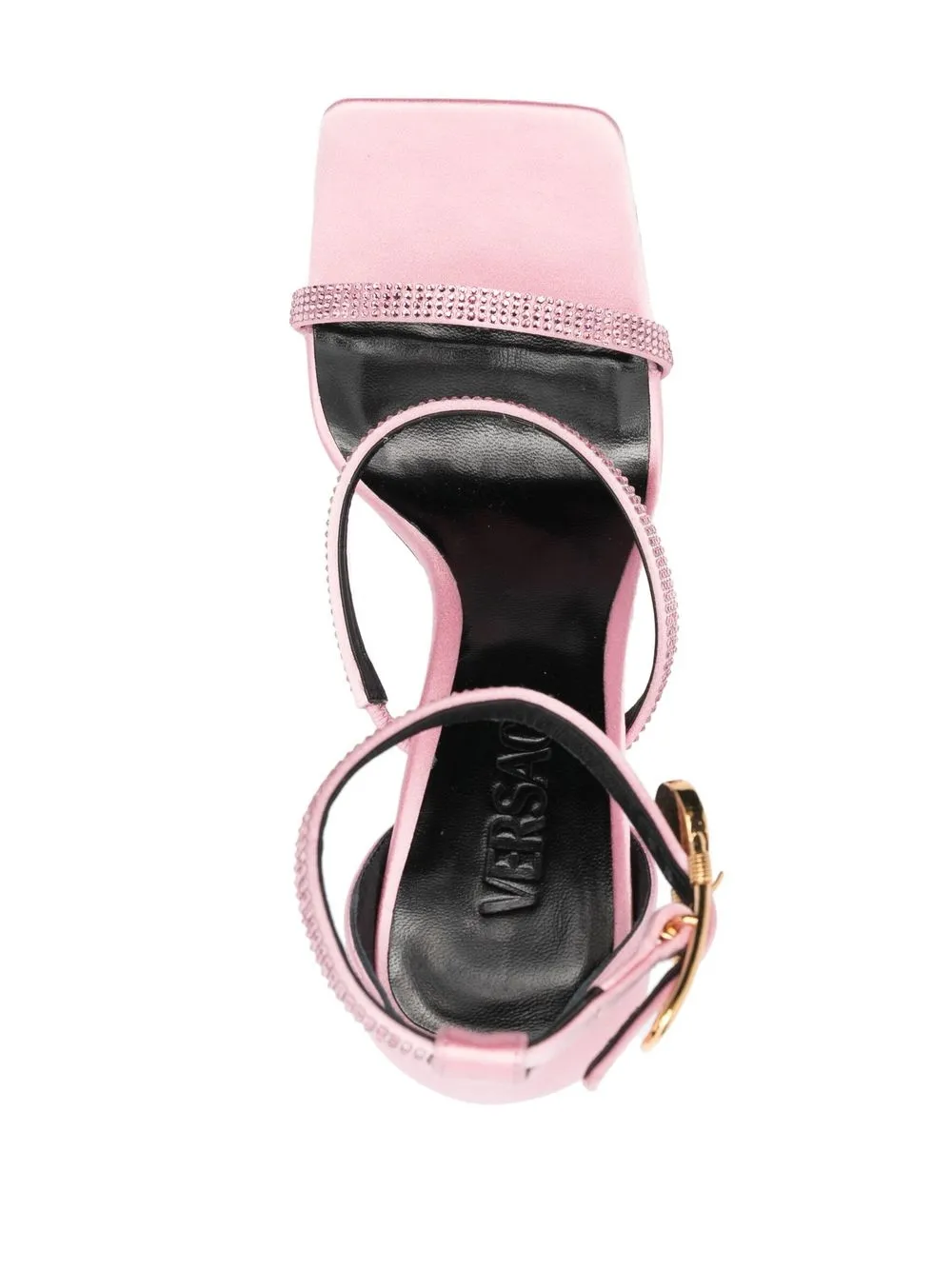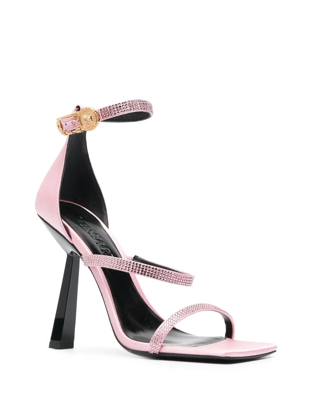 Versace’s sandals reflect the brand’s typically maximalist aesthetic. Set on a curved 125mm heel, this pink pair is encrusted with shimmering tonal crystals at the straps. The square toe lends a contemporary feel.